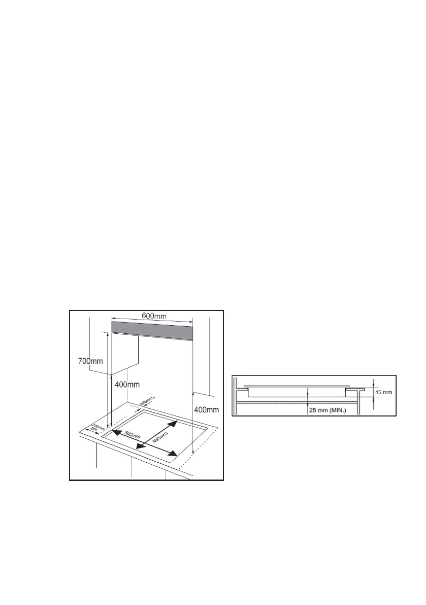 400 mm entre las superficies de la encimera, siempre que la parte inferior de la superficie