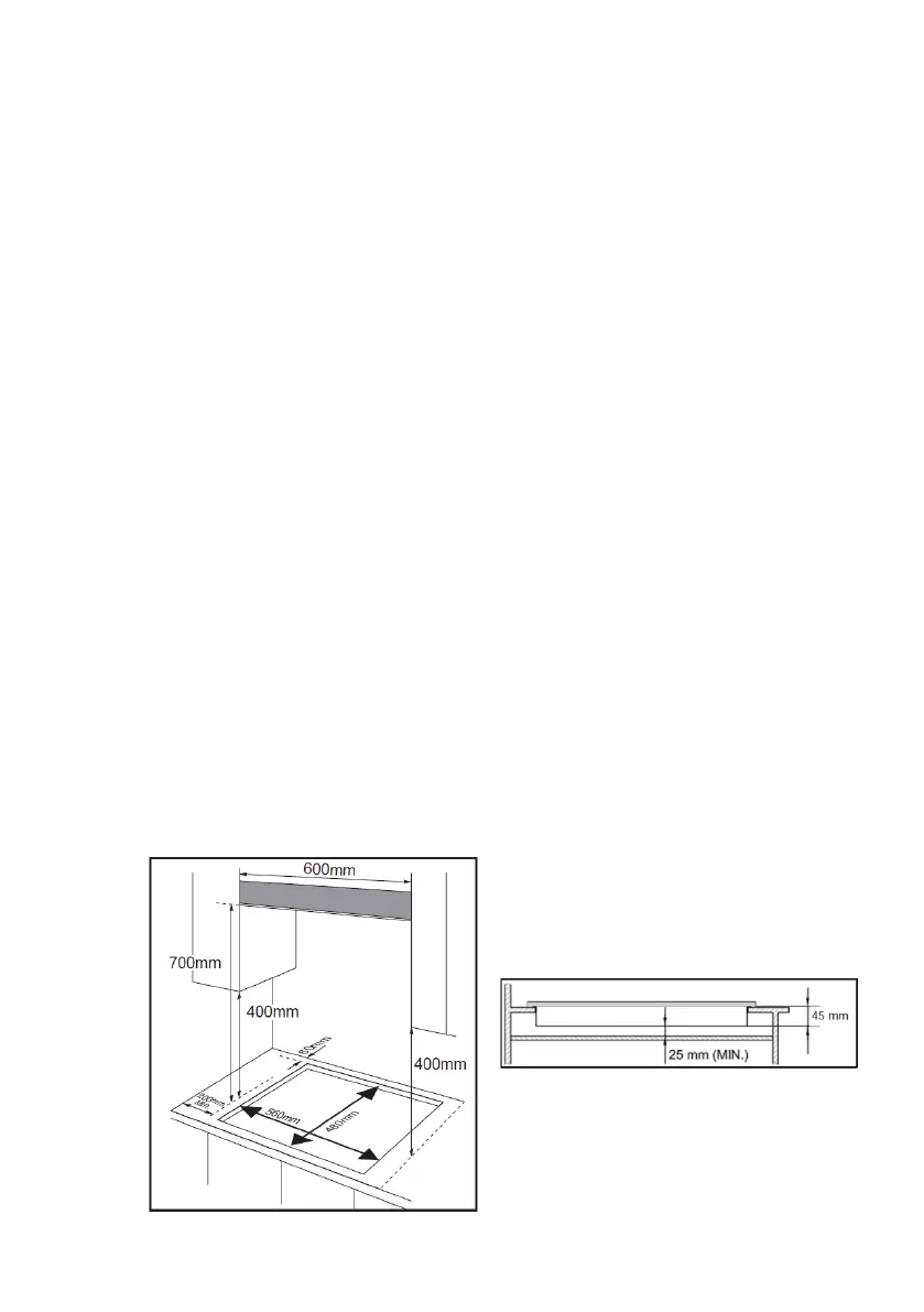 50 mm свободно пространство около уреда и между повърхността на плочата и всеки