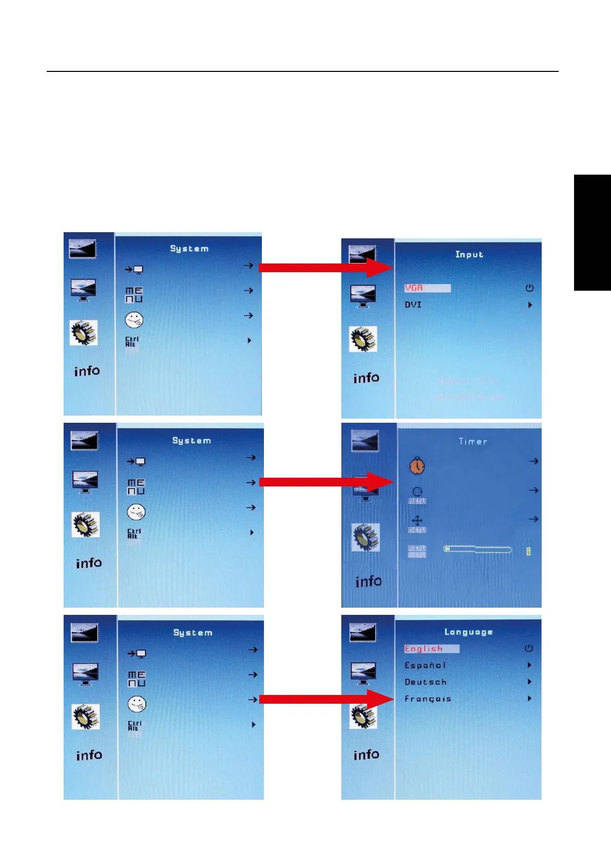 • Input: vous permet de choisir la source vidéo VGA ou DVI;