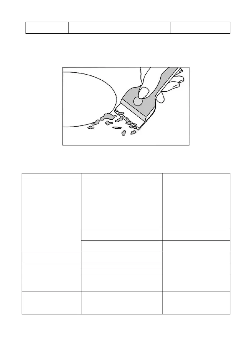 To prevent any damage to the surface of the hob, use a suitable scraper to immediately remove