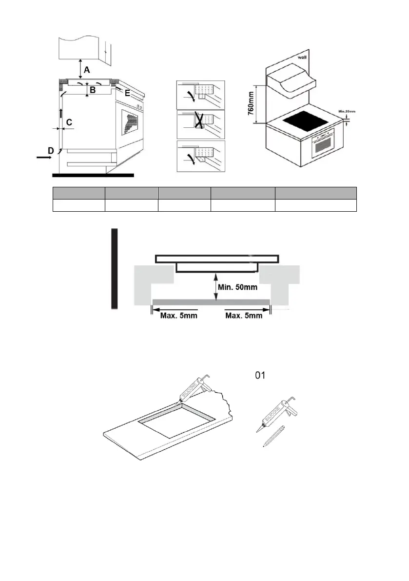 Couper le plan de travail selon les dimensions indiquées sur la figure et en utilisant le matériel approprié. Sceller