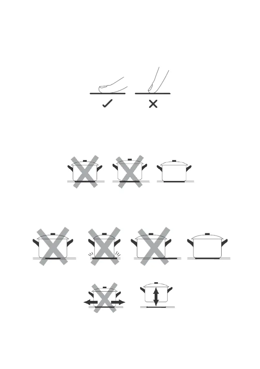 Assegureu-vos que la base del recipient sigui llisa, s’assenteixi totalment sobre la placa i tingui la