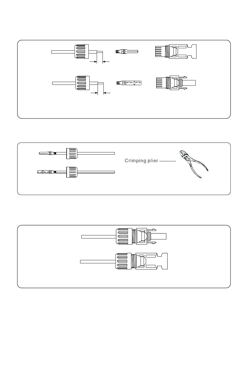 c) Insert the contact pin to the top part of the connector and screw up the cap nut to the top