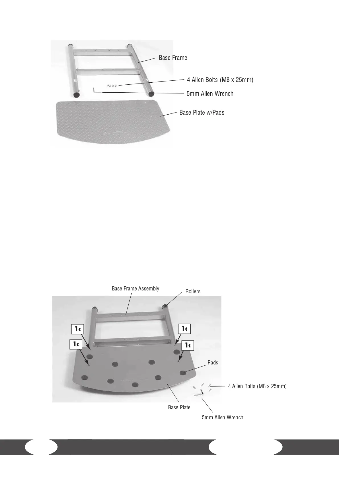 2. Position the ground plate on the main frame on the opposite side of the transport wheels and