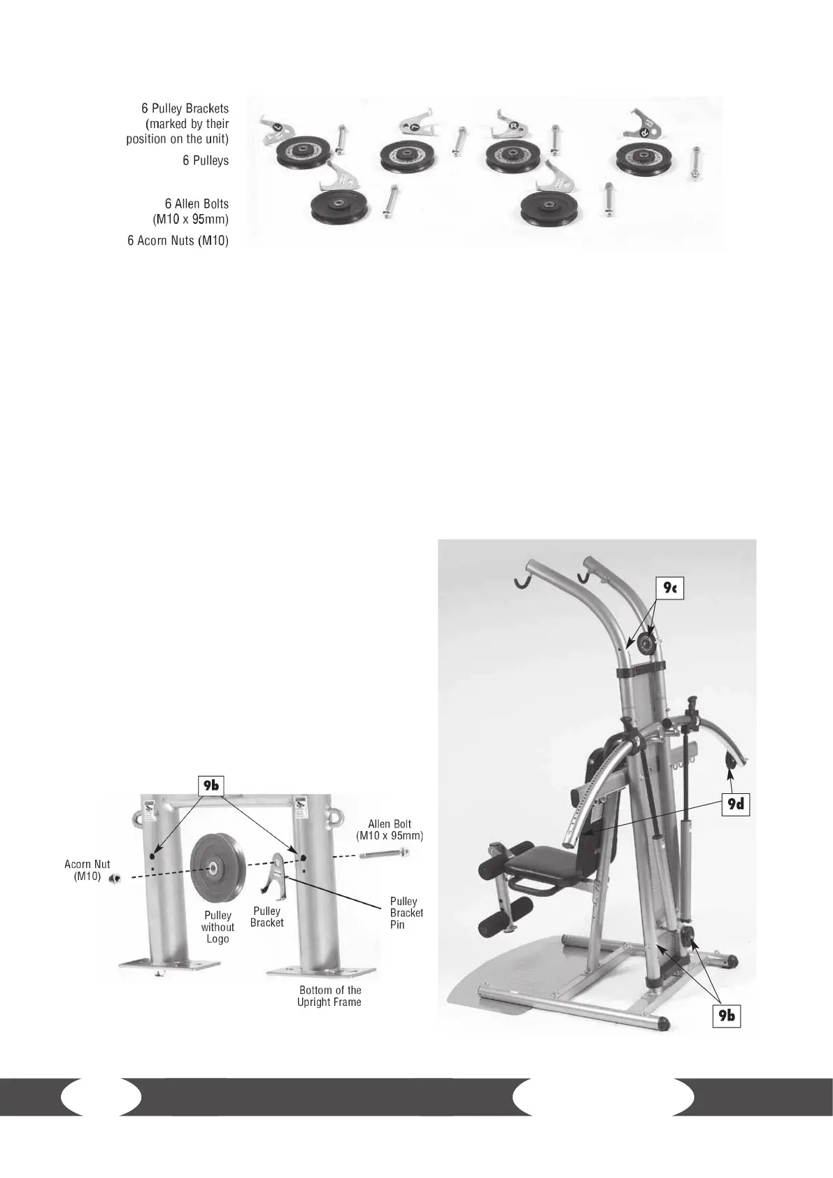 designated for the lower end of the main frame. Mount the pulleys on the lower backside of the