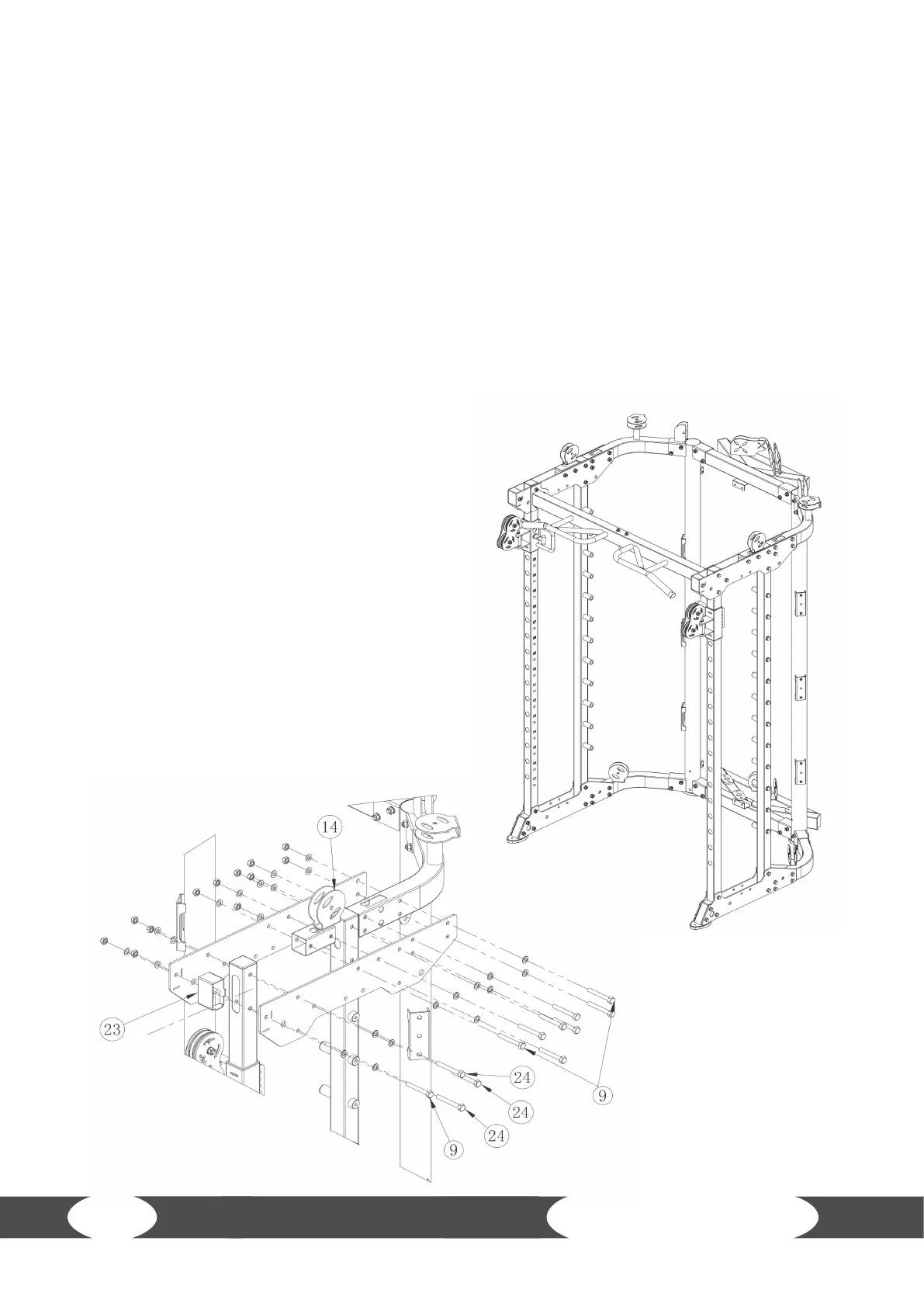4. Fix the two pulley frame tubes (14 & 15) between the upper plates (13) at the respective upright