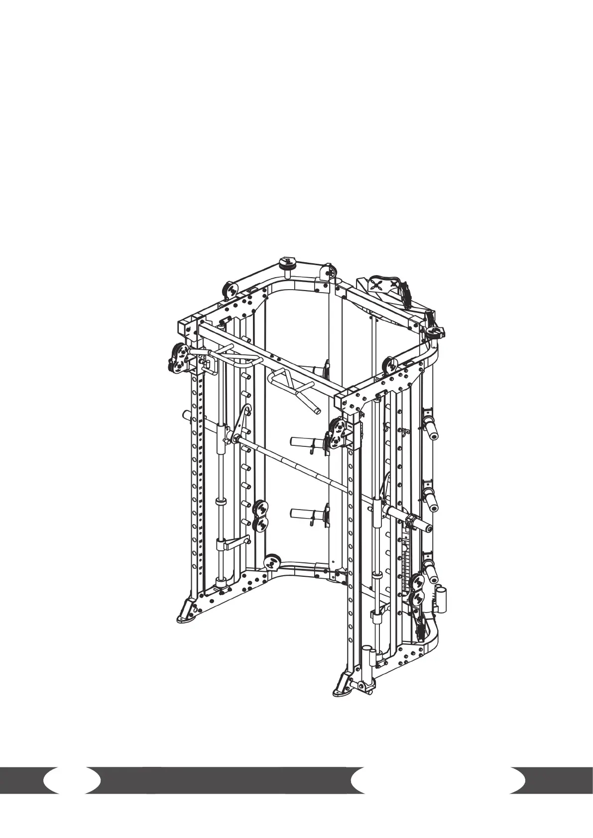 2. Mount the barbell rod cup (74) to the right upright frame (3) using two hexagon bolts (76), four