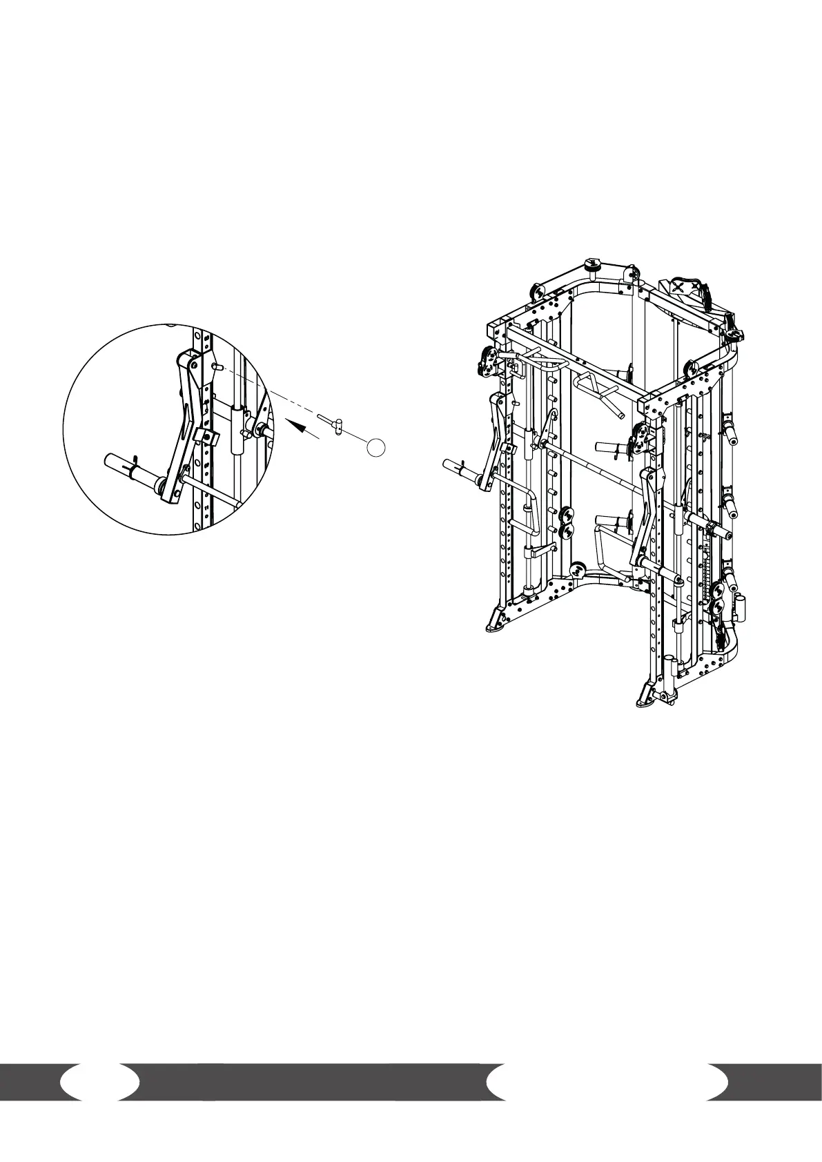 Attach the jammer arm with the pin (11) to the tubes of the multi gym, see illustration.