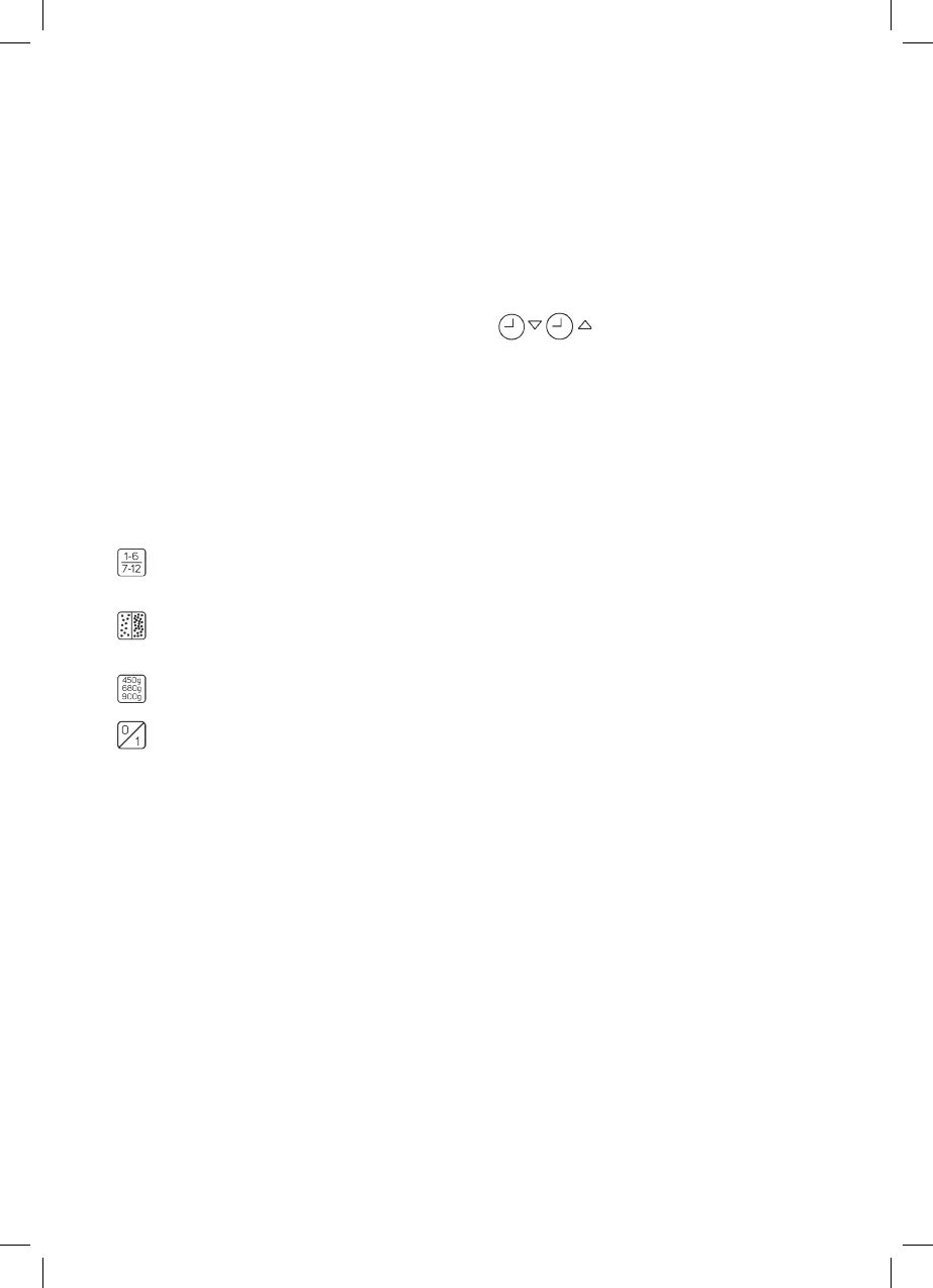 peso do pão (450g / 680g / 900g).