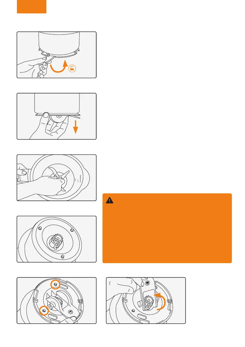 1. Desplazar la brida jación cuchillas 180º a posi-