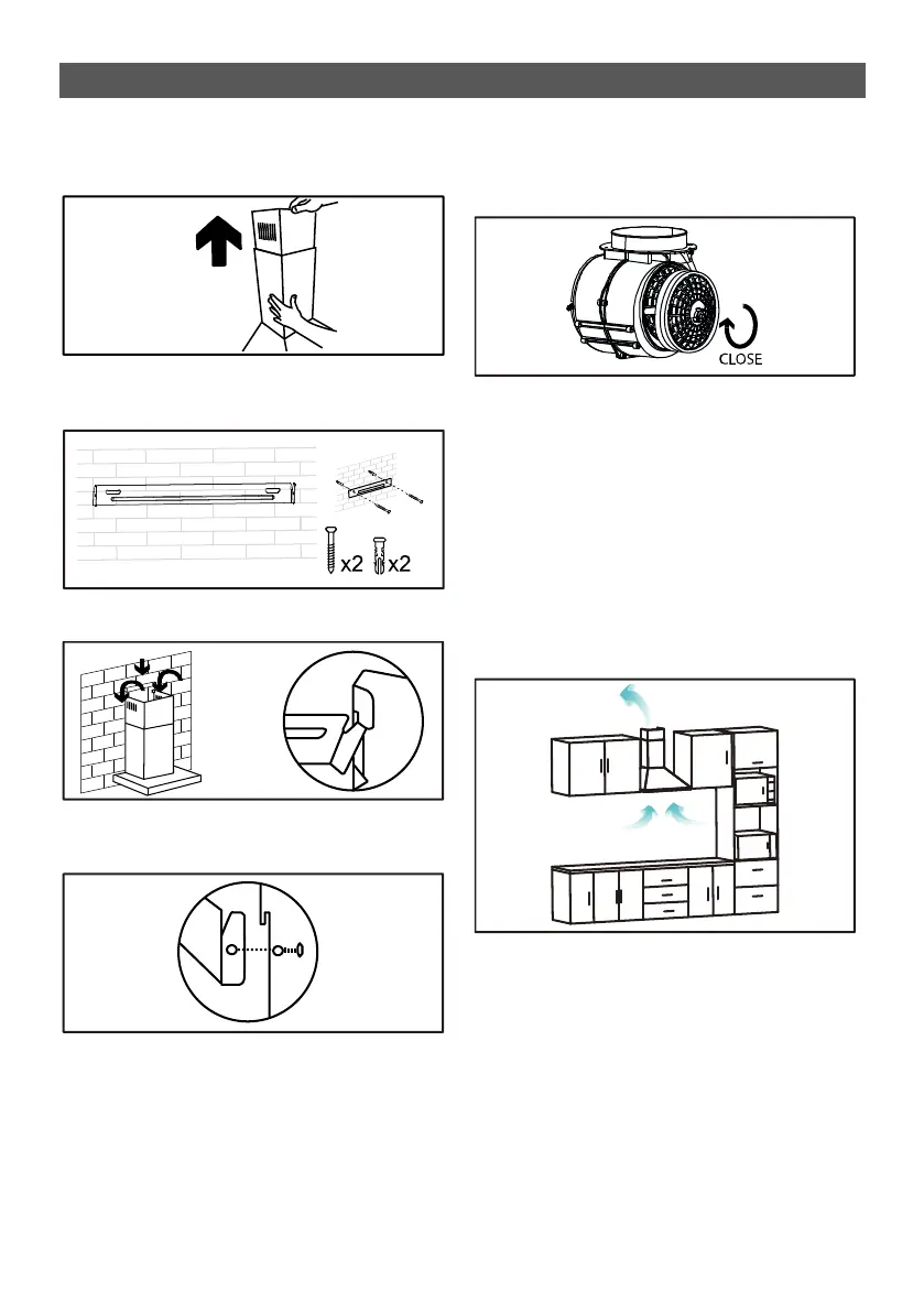 12. Cuelgue la chimenea superior al colgador