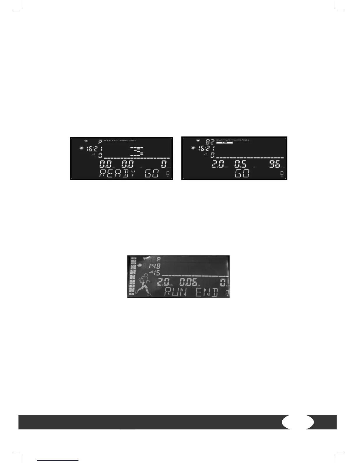 three seconds, the program starts at a speed of 0.8 km/h (0.5 mph), the incline is
