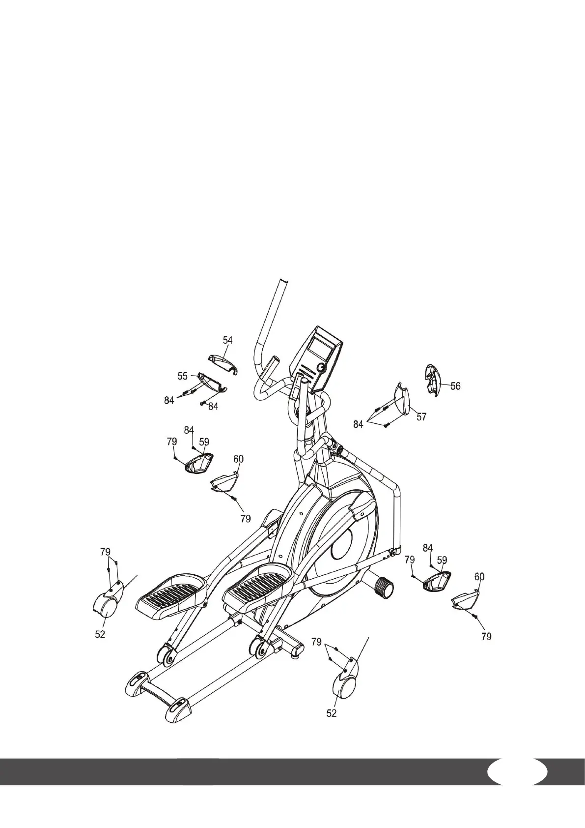 the end of the bar and the lower handles (L (4) and R (5)) with four screws (79) and two screws