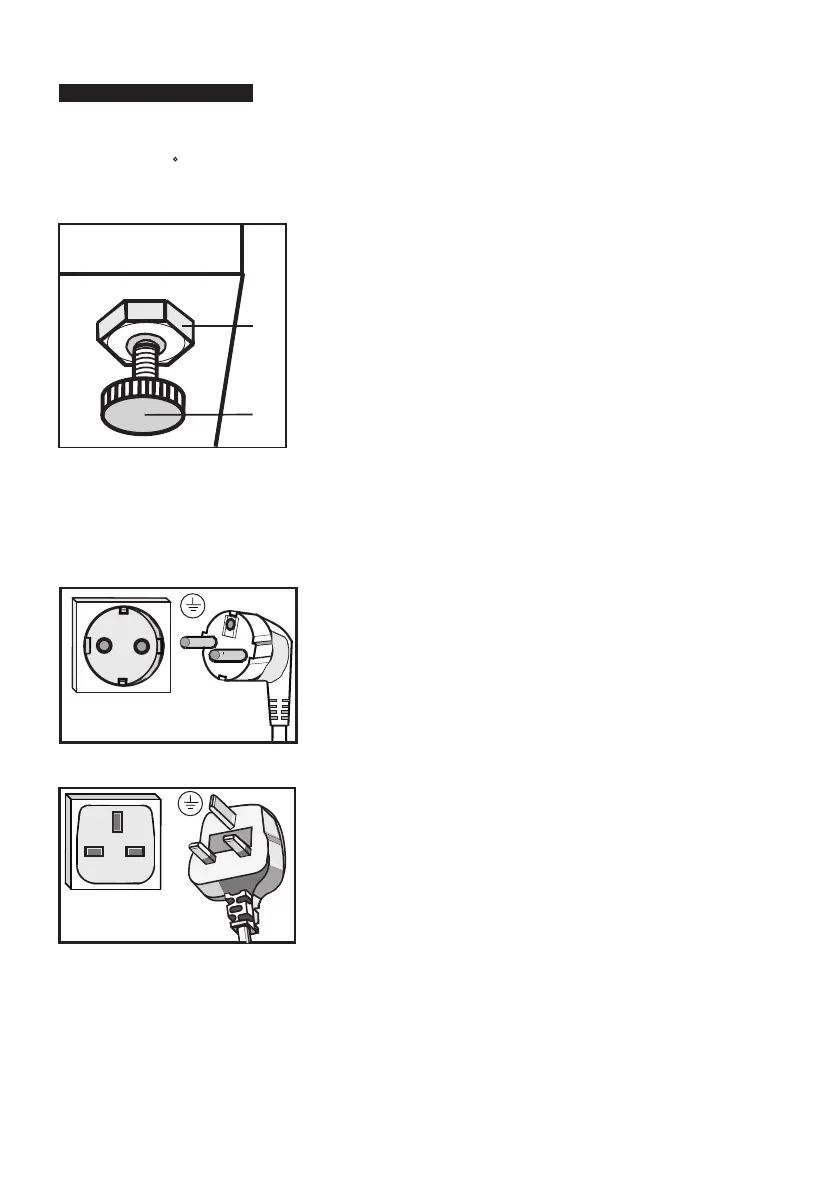 las patas regulables I situadas en la parte anterior de la