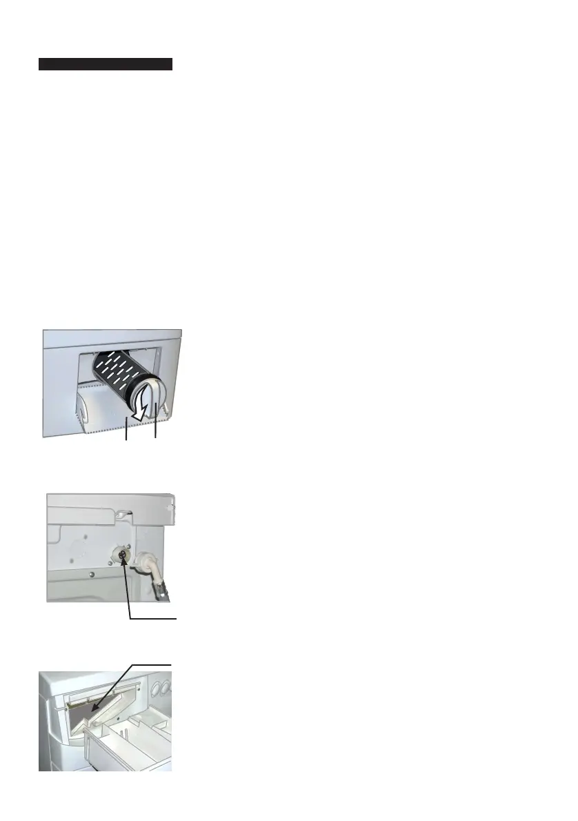 b) Desenroscar o tubo de entrada da água do lado da máquina.