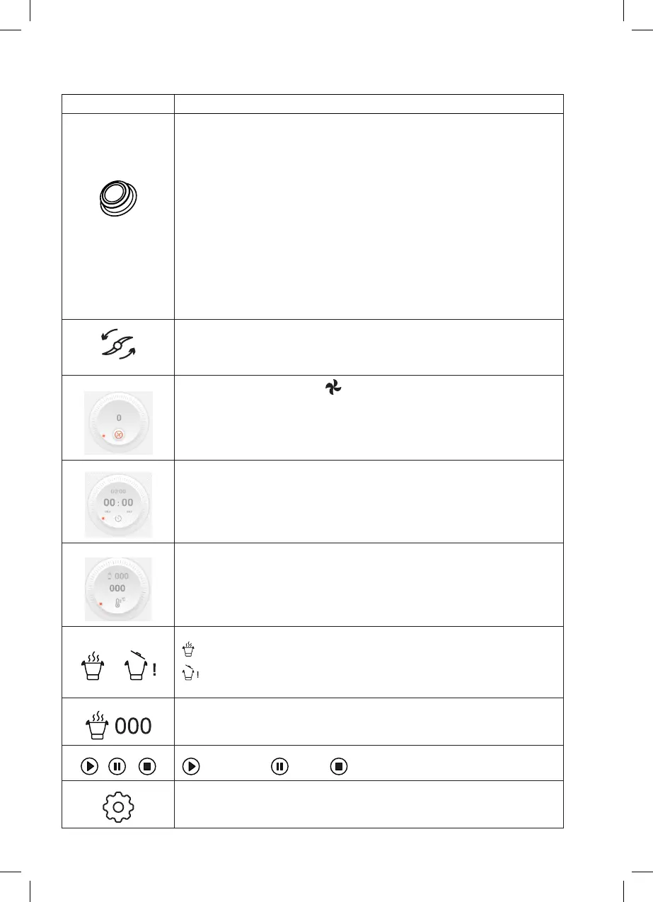 1. Aby ustawić temperaturę, czas i prędkość, przekręcić odpowiednio