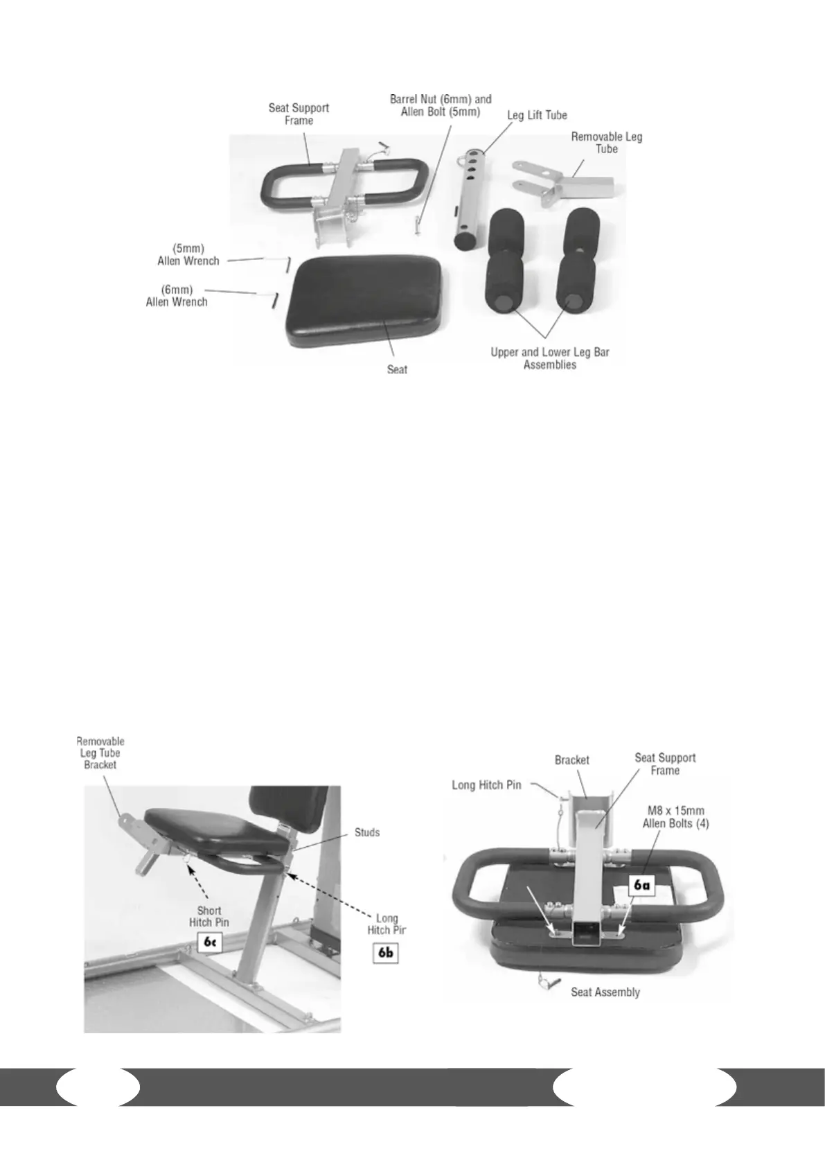 pin. Secure the seat by sliding the long socket pin through the holes under the dowel pin.