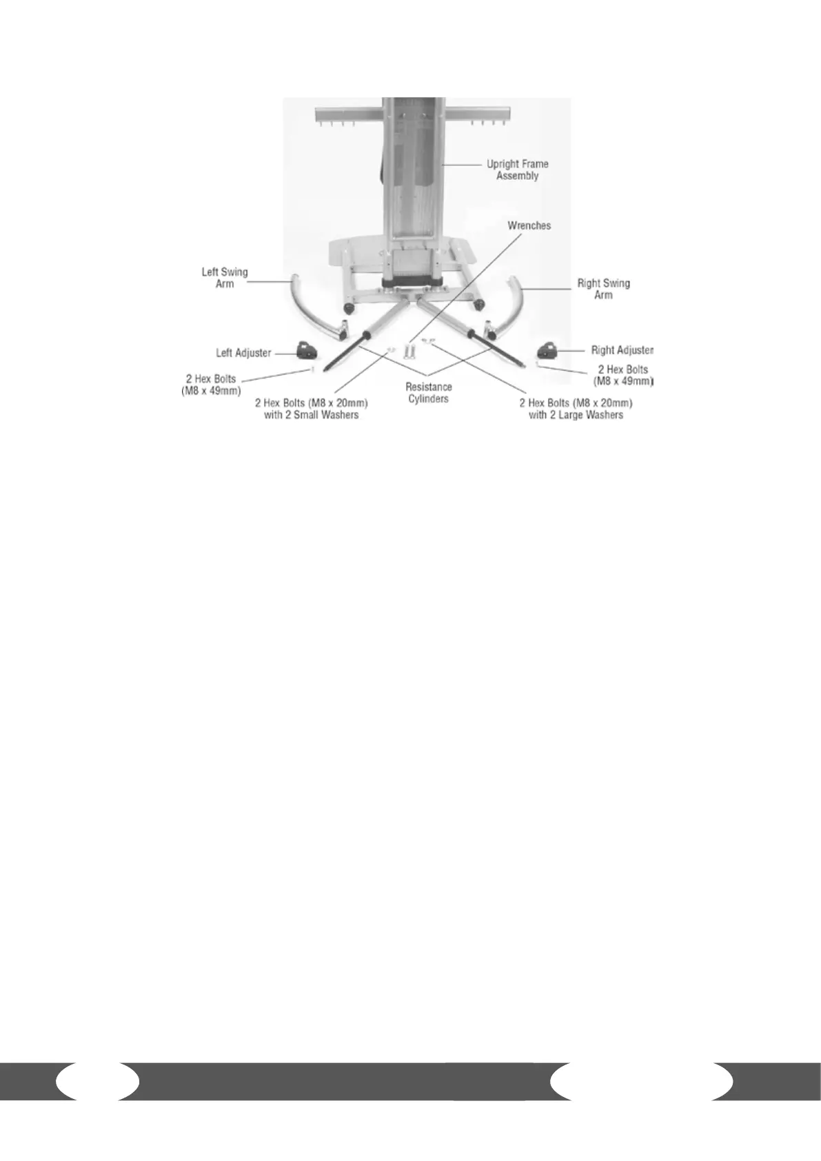3. Place the lower end of the resistance cylinder on the supporting bar of the lower crossbar