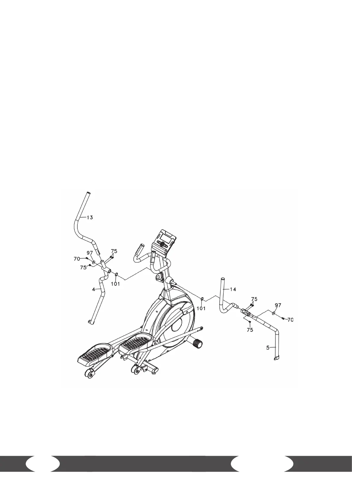 4. Fasten the left and right handles (13 and 14) on the lower left and right handles (4 and 5) with