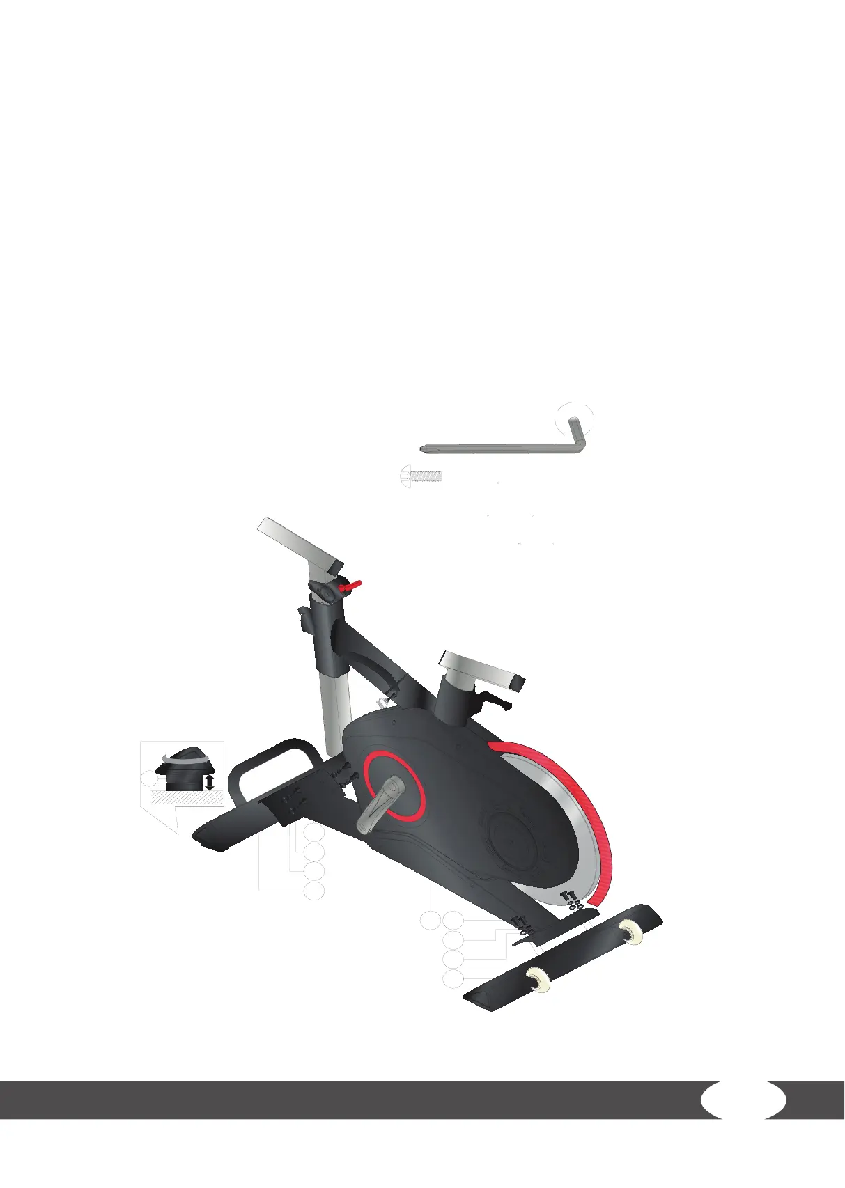 (2) Mount the front base (2) to the main frame with Allen screws (5), washers (7), and spring washers.