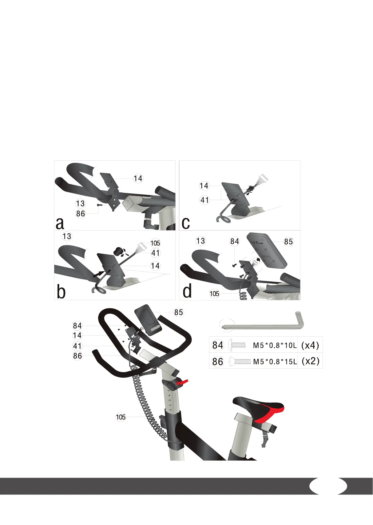 (4) Mount the console (85) to the mount with a screw (84) (g. d).