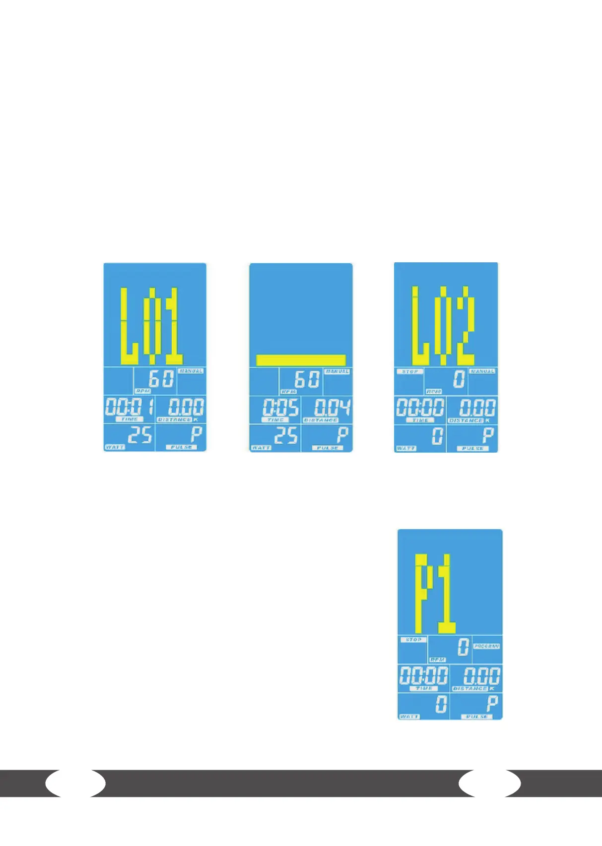distance, calories and watt. The rst three are being counted down. For example if you set your target