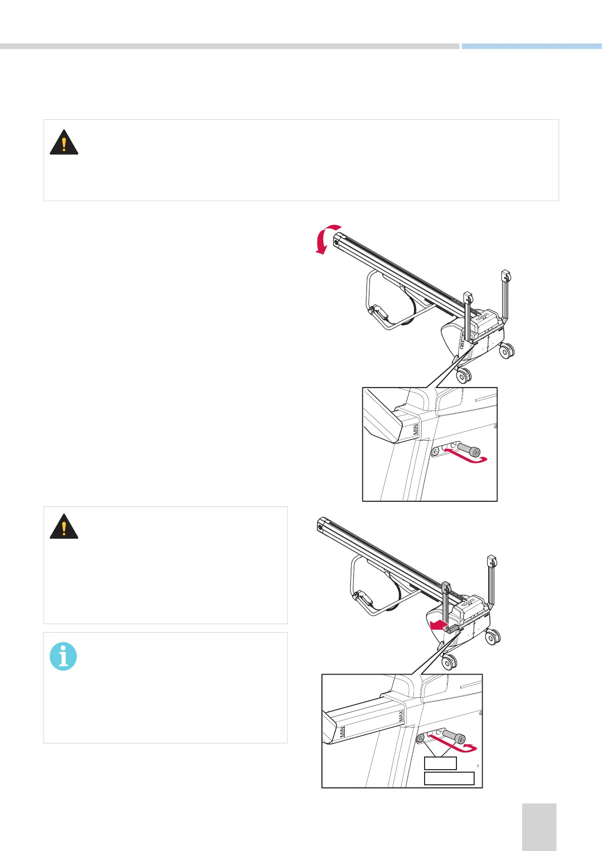 • Always adjust the legs within the max and min