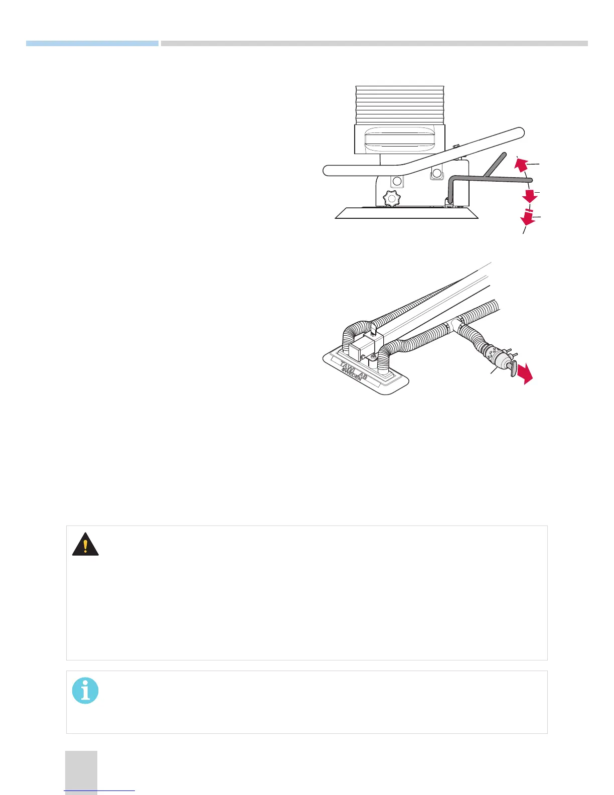 Check the lifter for safe functionality prior to each use, for instructions, see 6 Service & mainte-