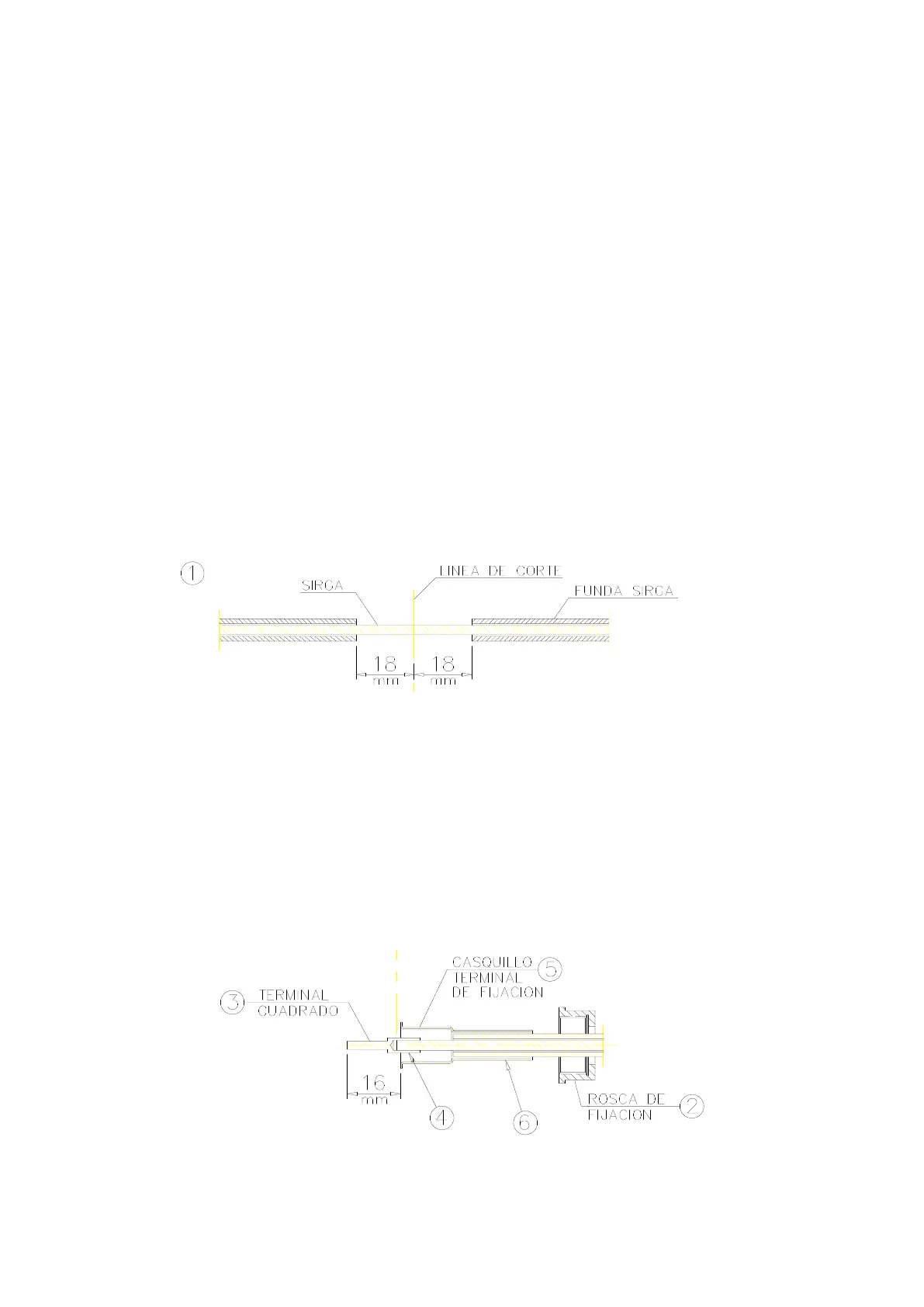 − A fixing ring (item 2) must be put in each of the two edges of the cable. The square