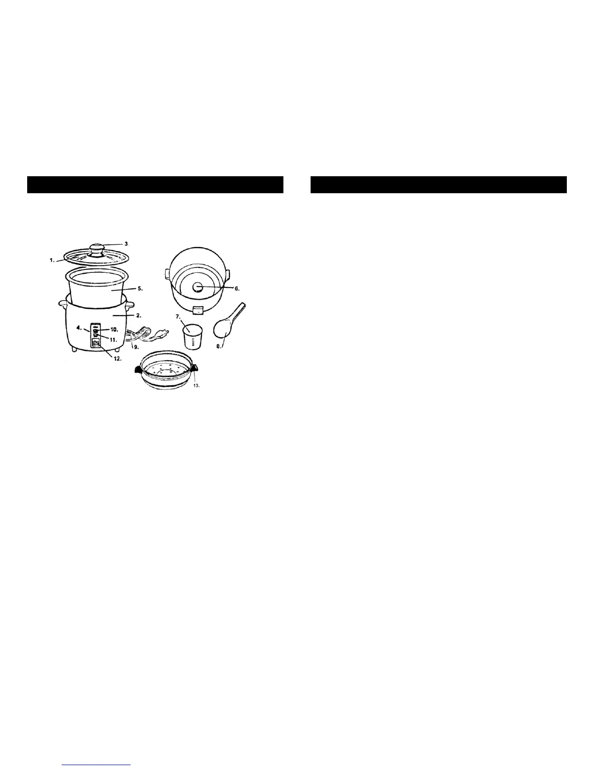 4) Rice Cooking Switches 8) Ladle 12) Switch