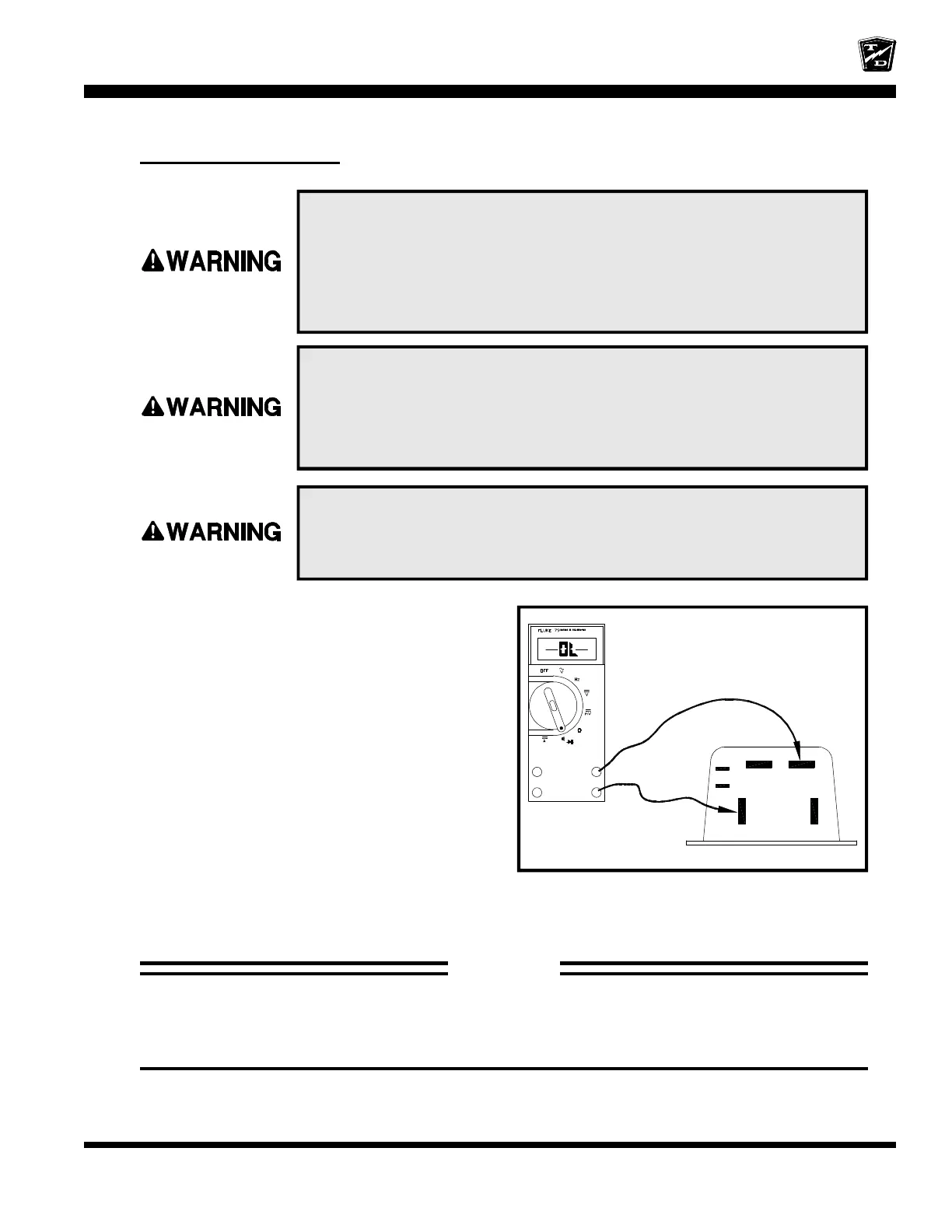 conducting tests. Failure to do so may cause serious bodily injury.