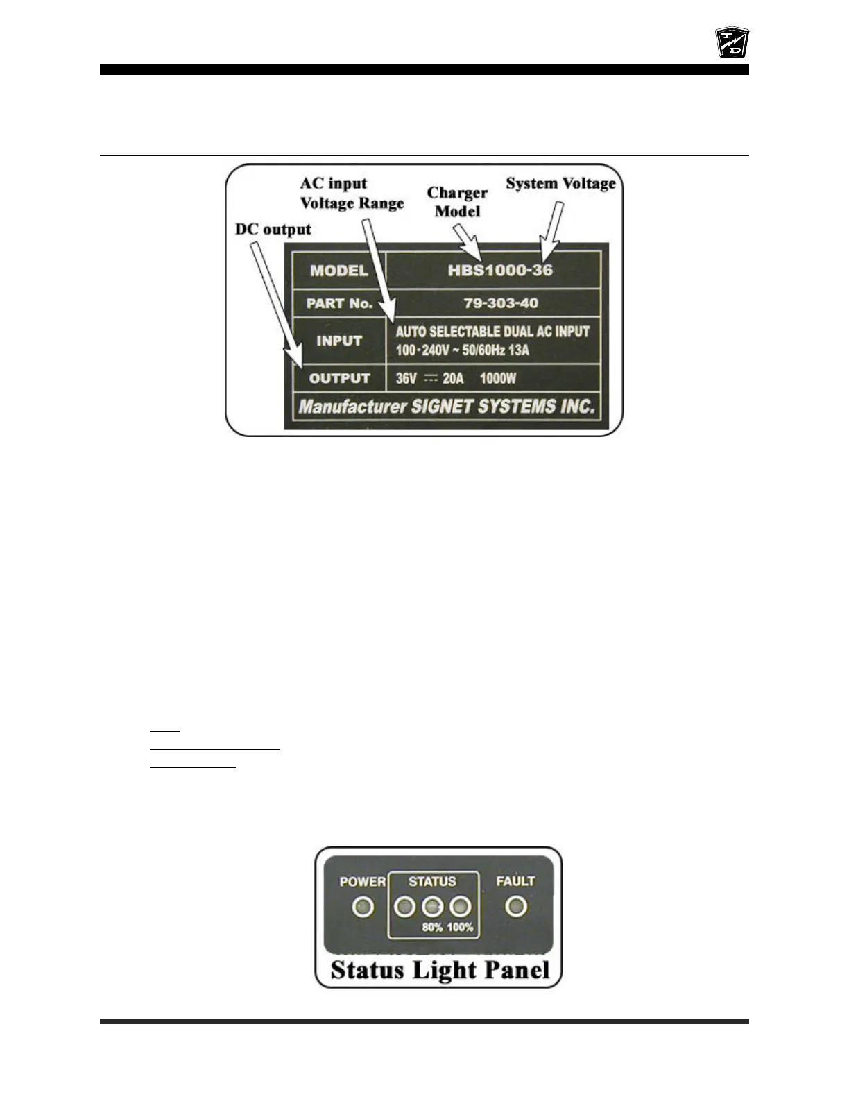 On the charger face plate, there is a status light panel that displays the current status of the charger.