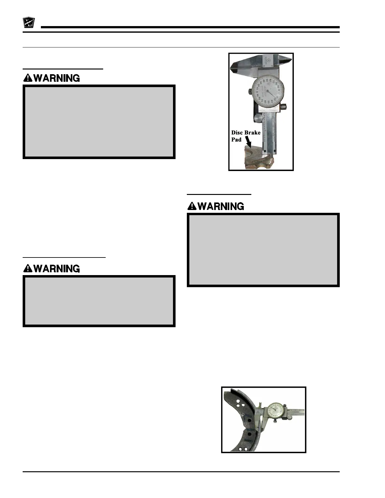 pad. If the brake pad lining is 1/16-inch or less then the