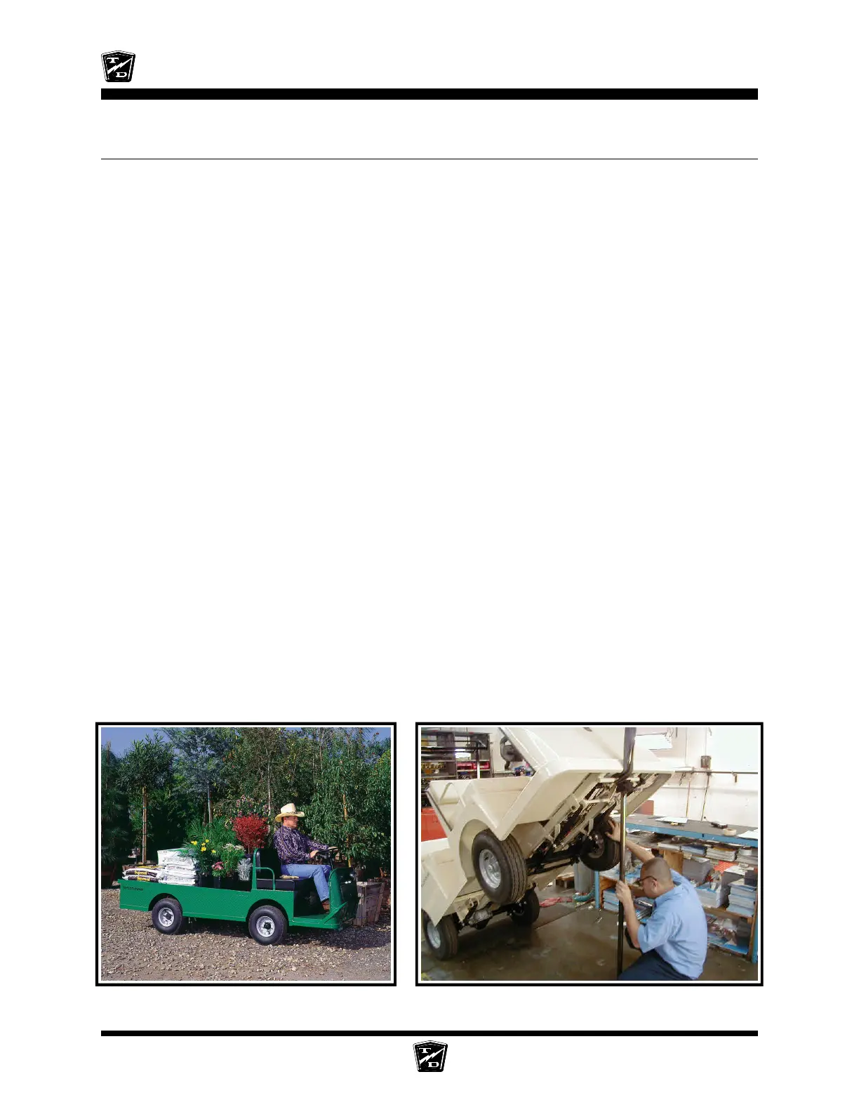 Before servicing, operating, training or performing maintenance on this or any other Taylor-Dunn