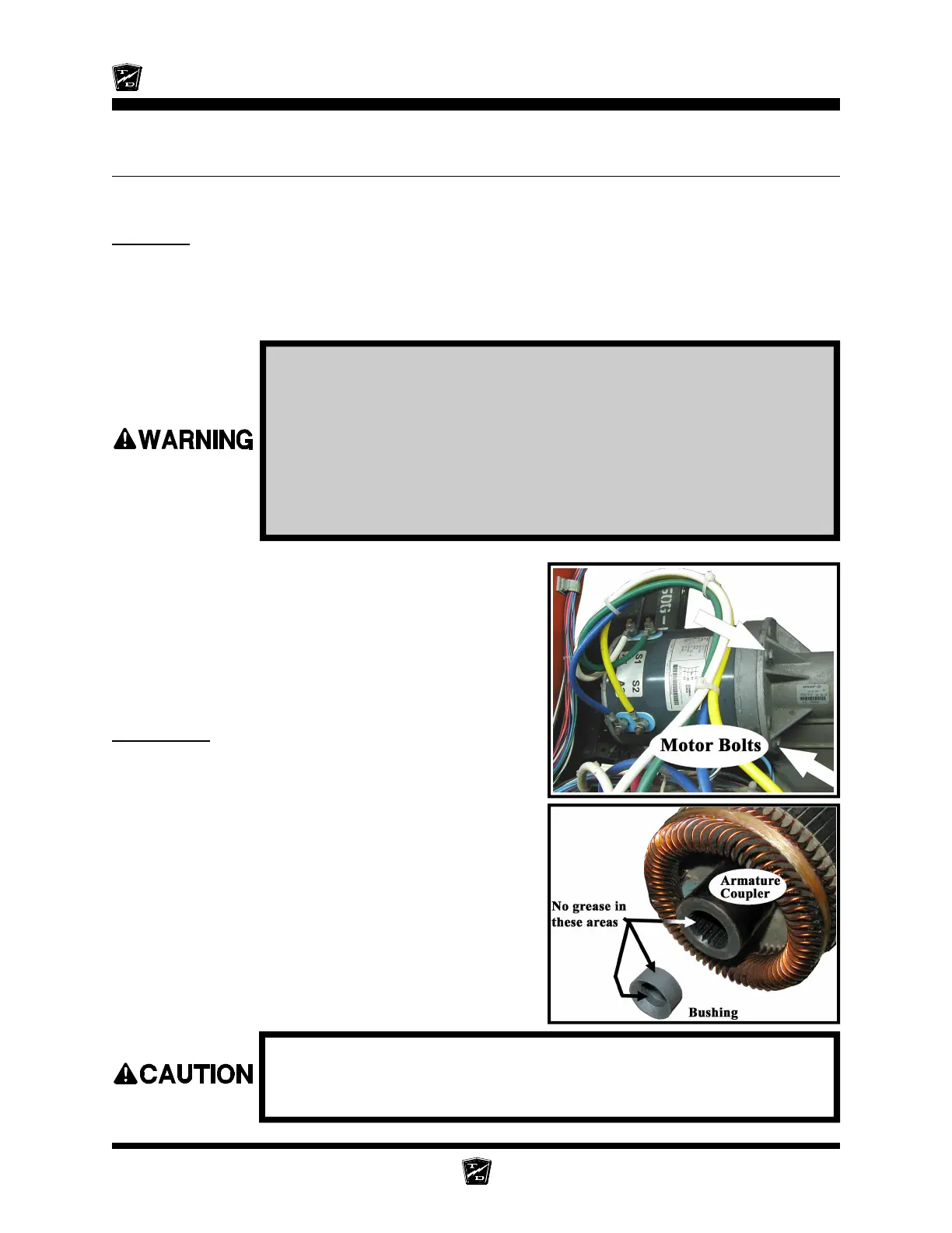 Do not apply grease to the armature coupler, rubber bushing or the