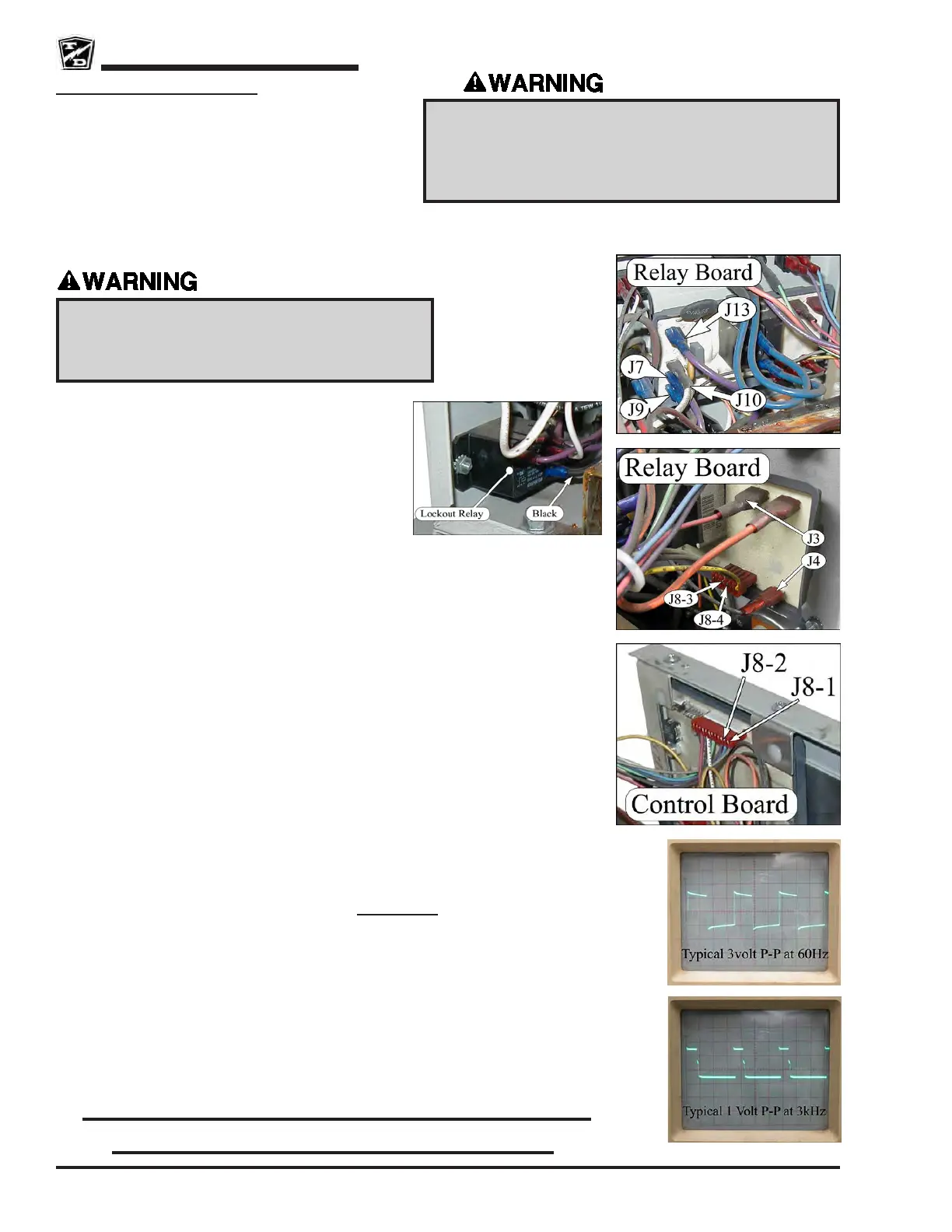 12. Connect an oscilloscope to Control Board J8-2 terminal (use Relay Board J4 as ground).