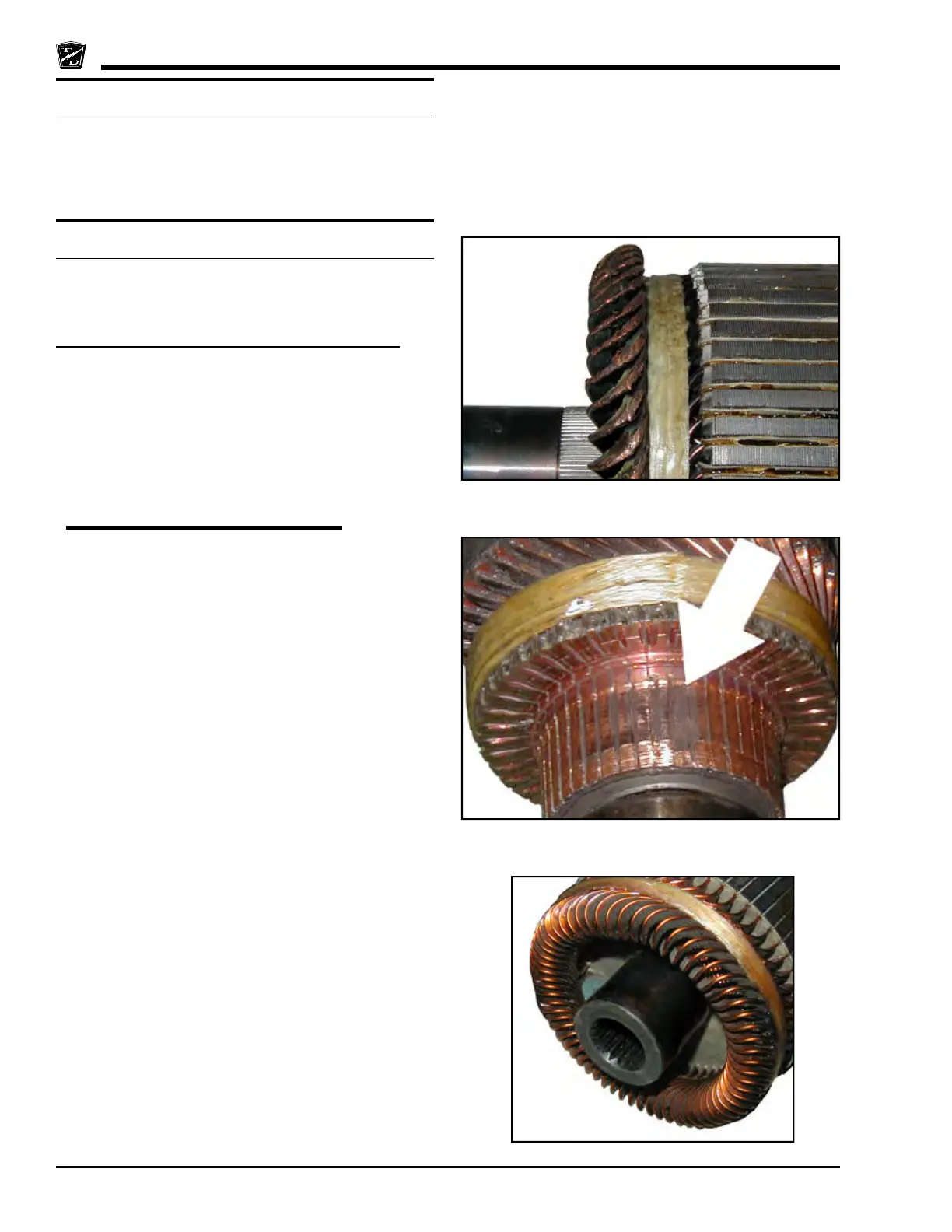 Visually inspect the armature windings where they loop