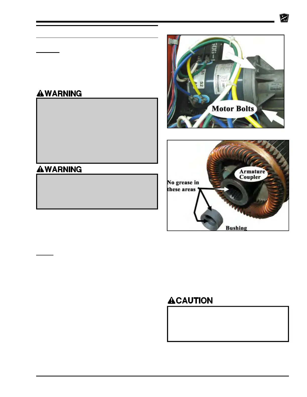 • Tighten the motor mounting bolts per torque
