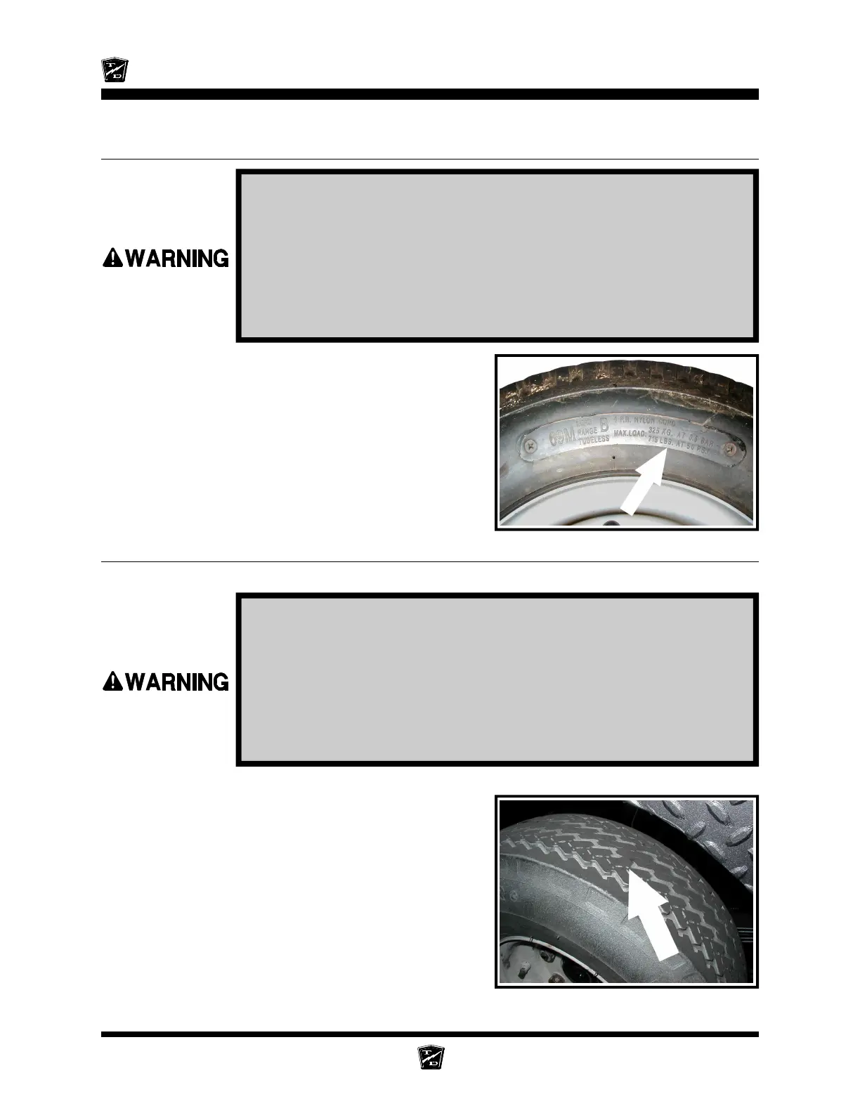 7. Inspect the tire tread depth. Minimum