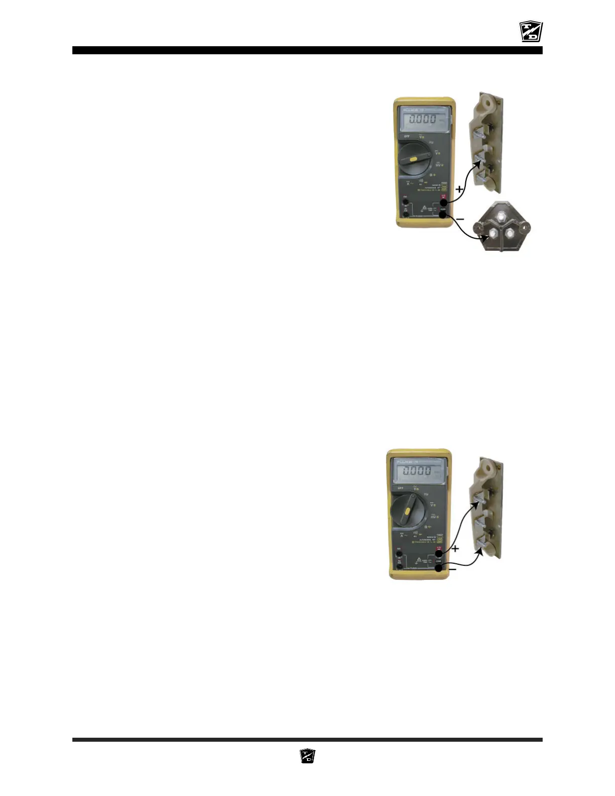 • Test the voltage from the fuse assembly (-) to the diode block (+).