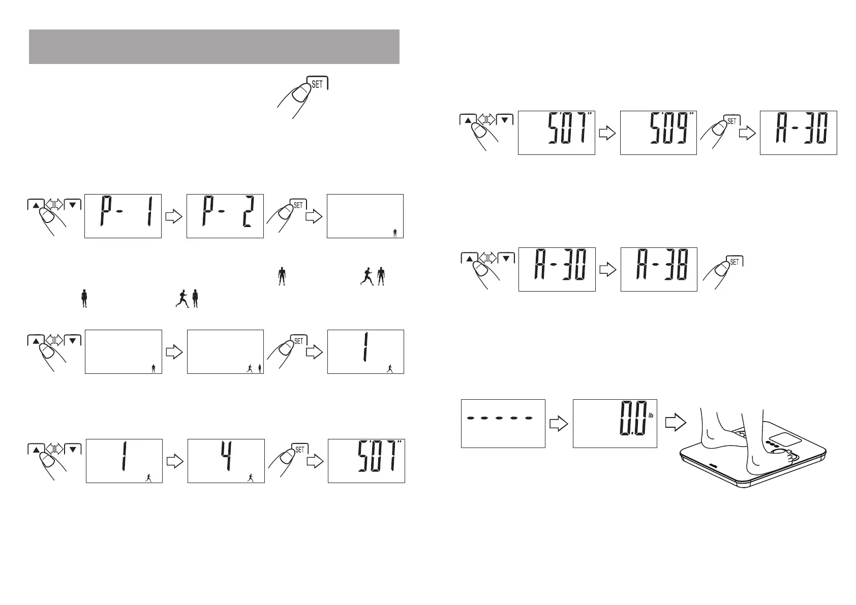 You may step on the scale for a reading with bare feet when “0.0” appears on the