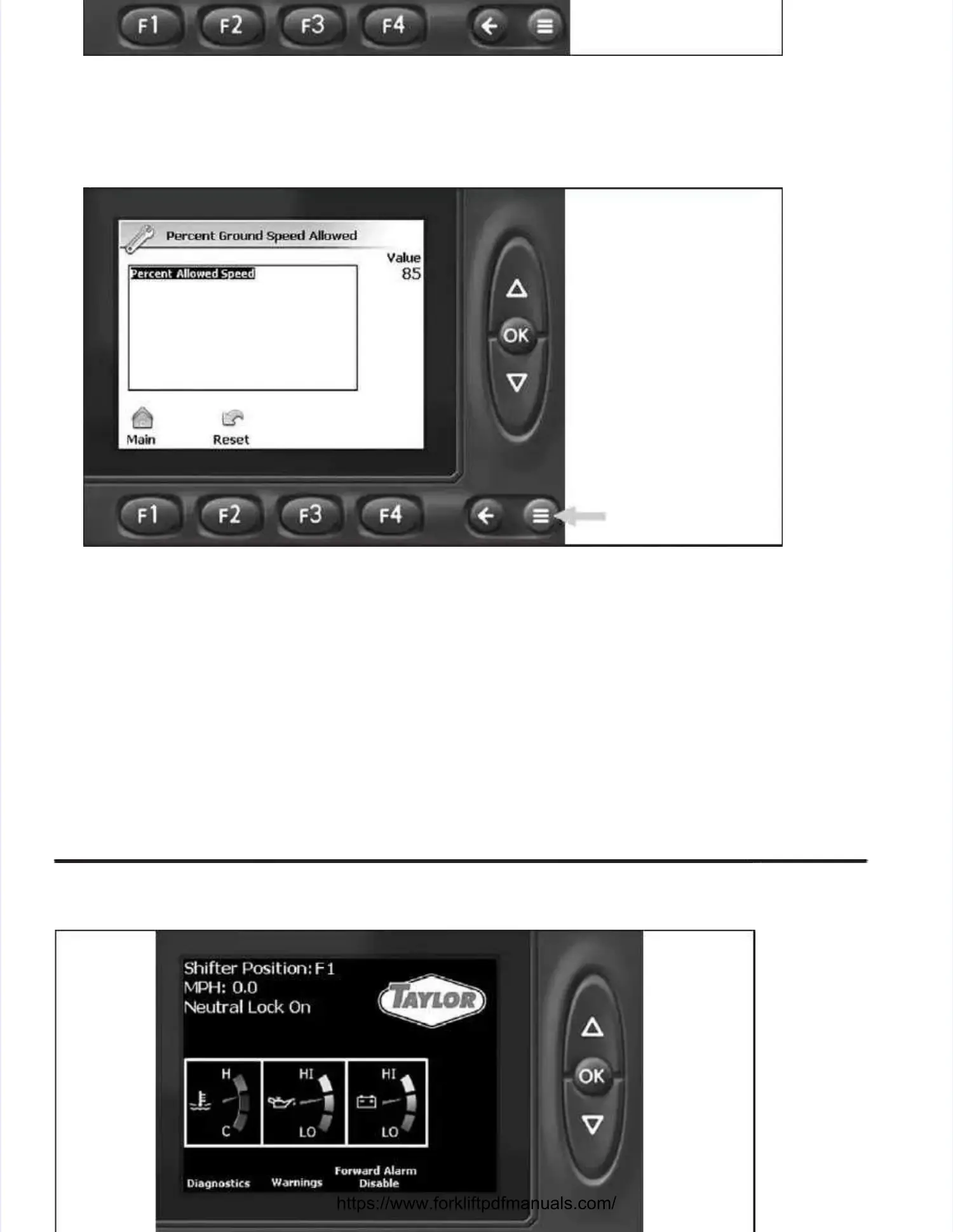 Display screen.Display screen. NOTE:NOTE: At the above scAt the above screen, the Percent Ground reen, the Percent Ground Speed Allowed percentage is Speed Allowed percentage is dis-dis-