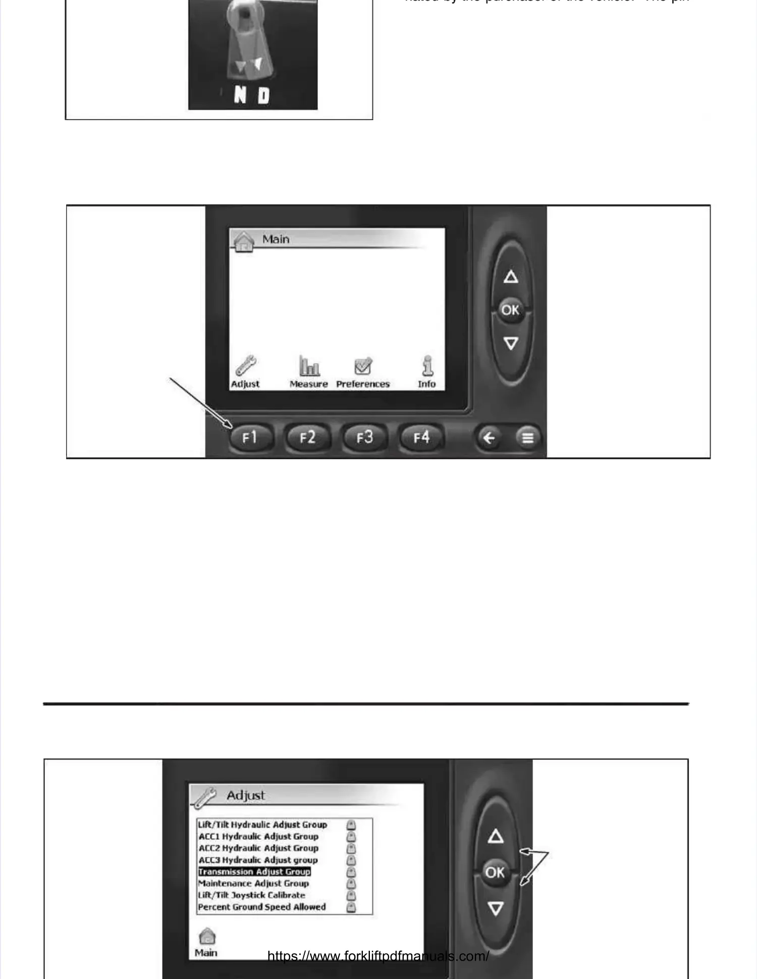 2.2. DepresDepress the Fs the F1 butt1 button (Adjon (Adjust) tust) to acco access thess the Adjuse Adjust scret screen.en.