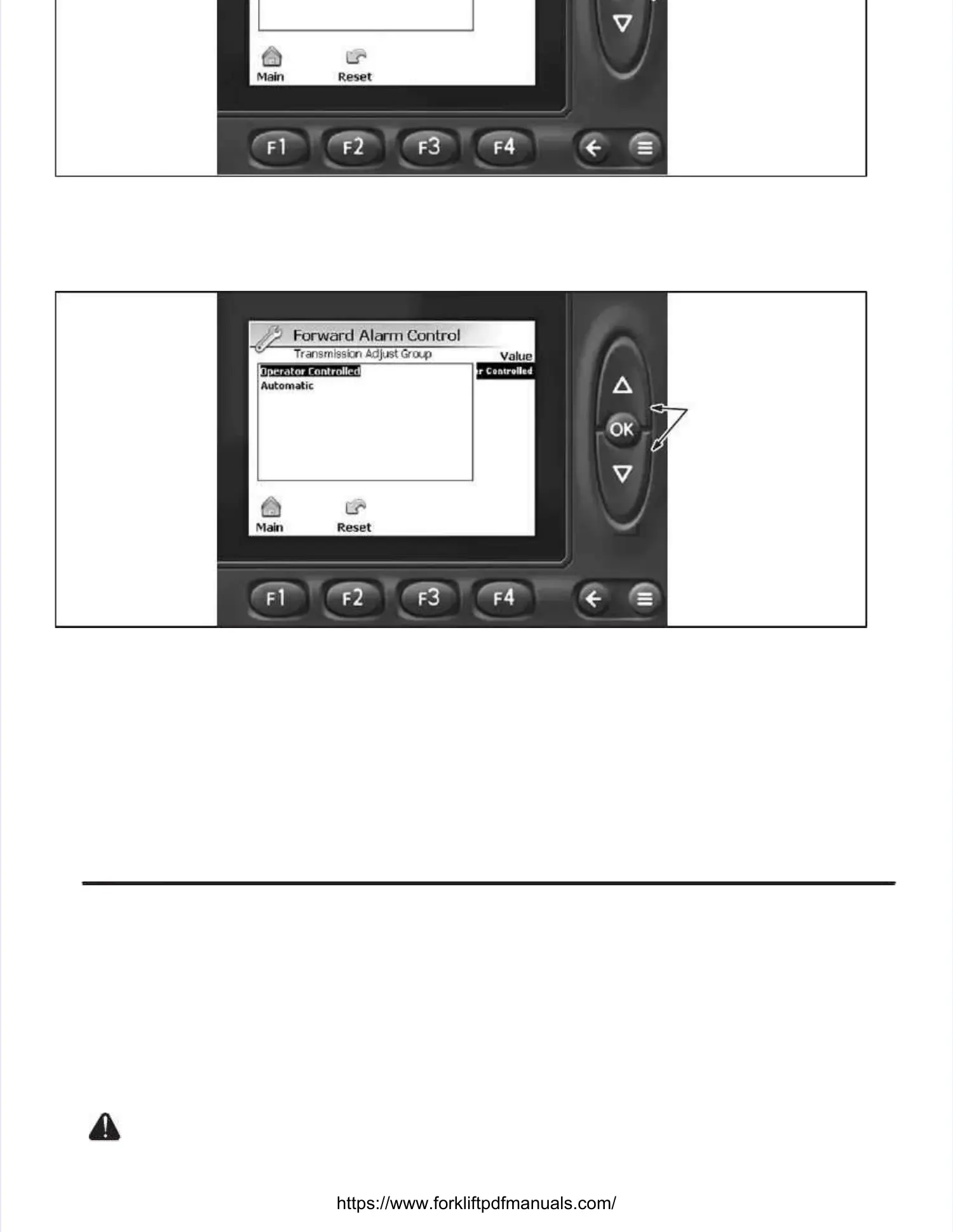 alarm). alarm). Selecting Operator Controlled Selecting Operator Controlled activates the forwactivates the forward alarm only when ard alarm only when the operator chooses tthe operator chooses too