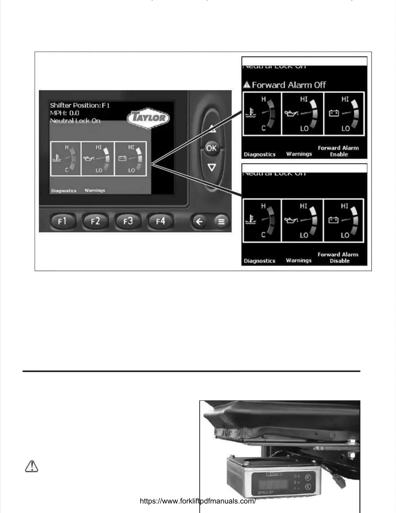when the electric shifter is placwhen the electric shifter is placed in its Forward position. ed in its Forward position. A Forward Alarm Off tA Forward Alarm Off text message will be dis-ext message will be dis-
