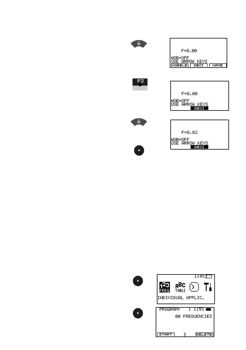 Example: how to enter frequency values of 100 Hz, 200 Hz and 1234 Hz in