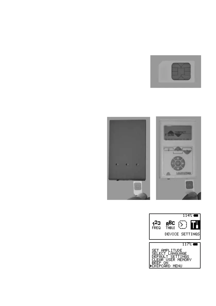 “DEVICE SETTINGS" activated, a "CHIPCARD