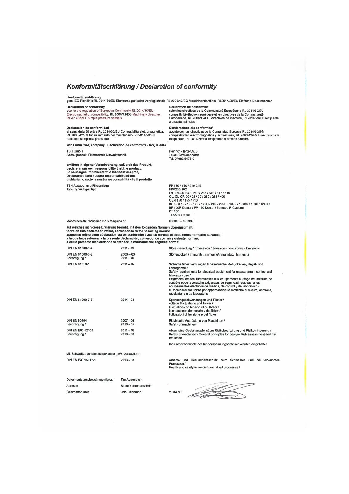 TBH LN260 - 10 Konformitätserklärung; Declaration of Conformity