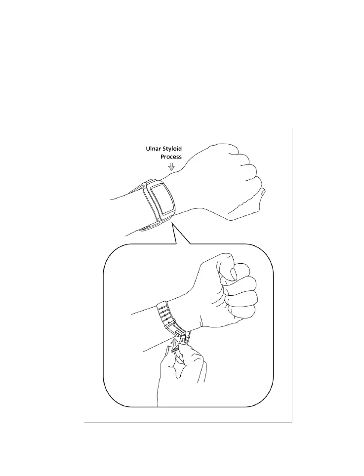 slightly above the wrist bone (ulnar styloid processus) as