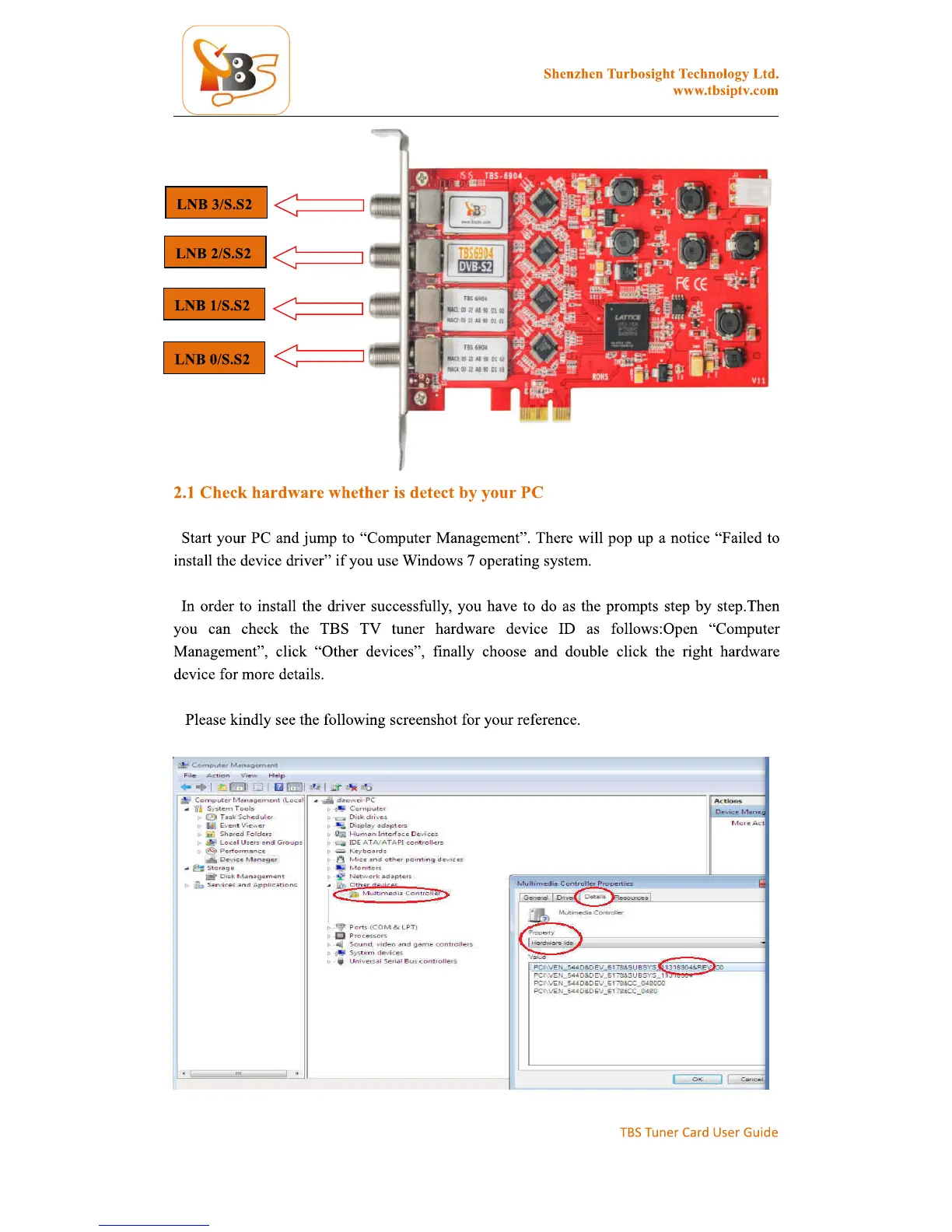 tbs electronics 6902 - Connect TV Signal to Tuner; Software Driver Installation; Install TBS TV Tuner Driver